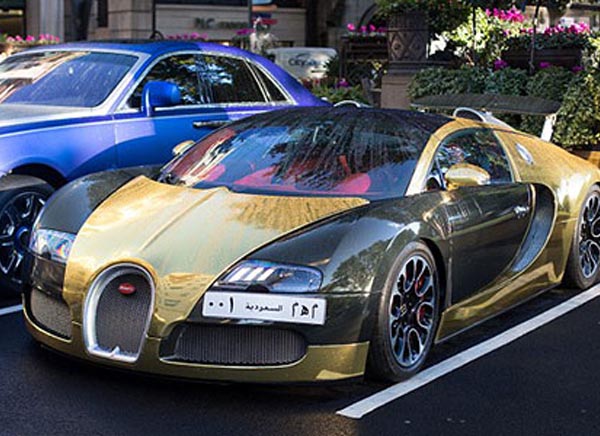 Seorang miliarder membuat gempar di London dengan memamerkan Bugatti Veyron warna hitam dan emas dengan nomor polisi Arab Saudi.