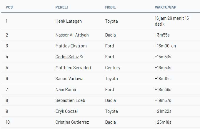 Etape 4 Dakar 2026 - Mobil : Henk Lategan Kuasai Papan Atas Klasemen