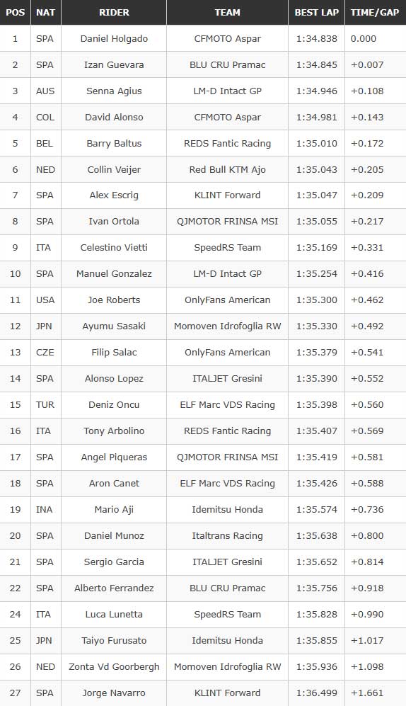 FP2 Moto2 Thailand 2026: Daniel Holgado Tercepat